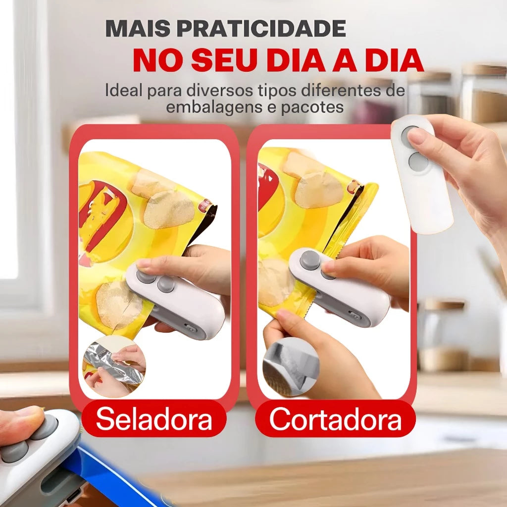 Com a Mini Seladora de Embalagens Portátil USB, você garante praticidade, economia e frescor na sua cozinha – tudo em um aparelho compacto e fácil de usar!
