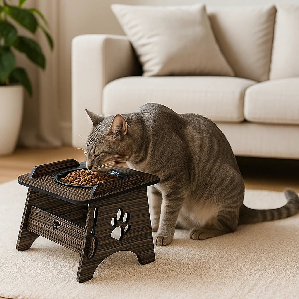 Com o Comedouro Elevado em MDF 6mm resistente e envernizado, você garante mais conforto, higiene e qualidade de vida para o seu cão ou gato, além de ter um acessório com design moderno que combina com qualquer ambiente da sua casa.